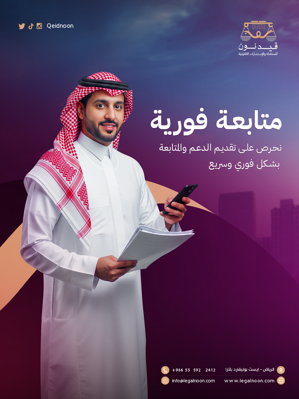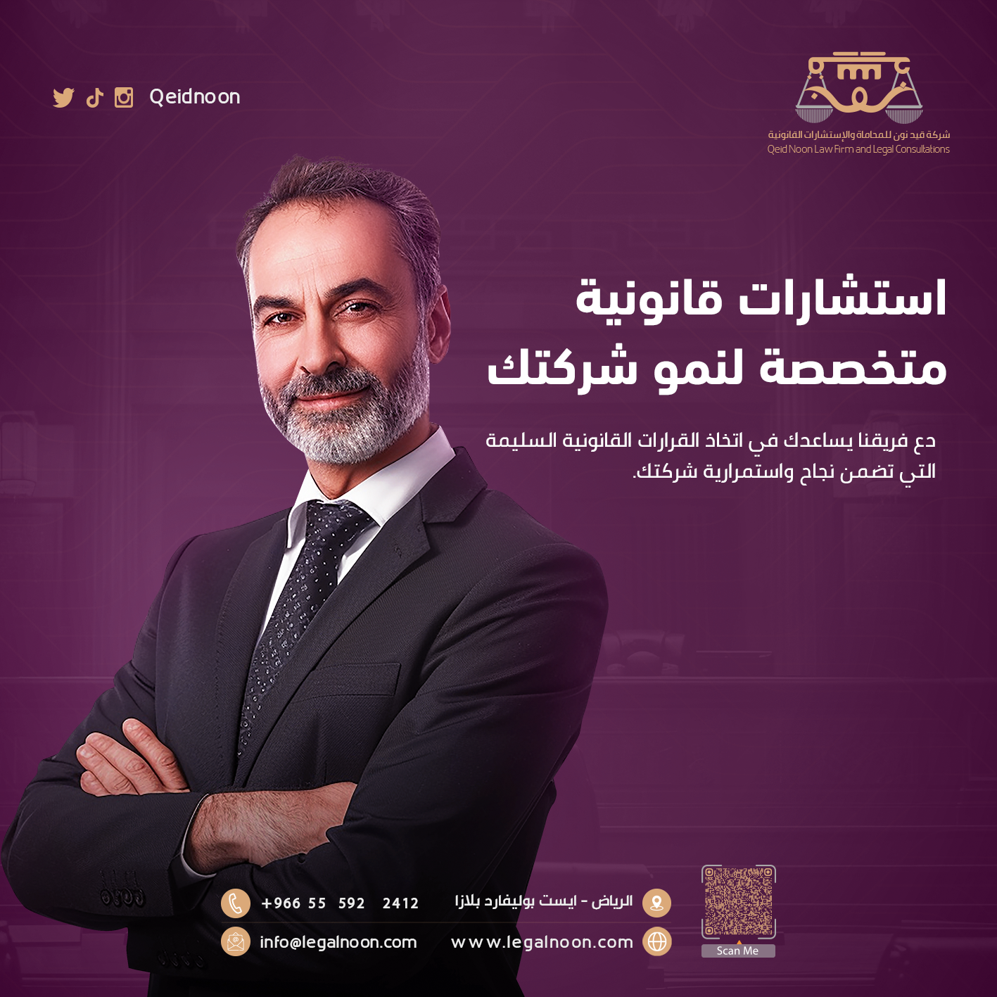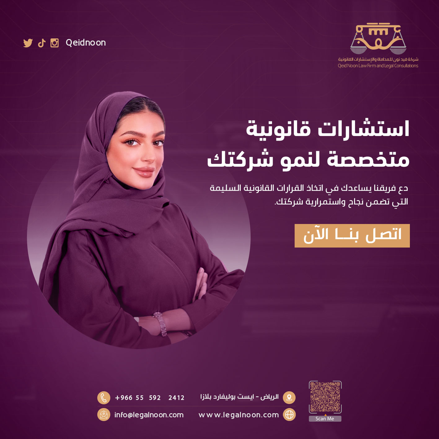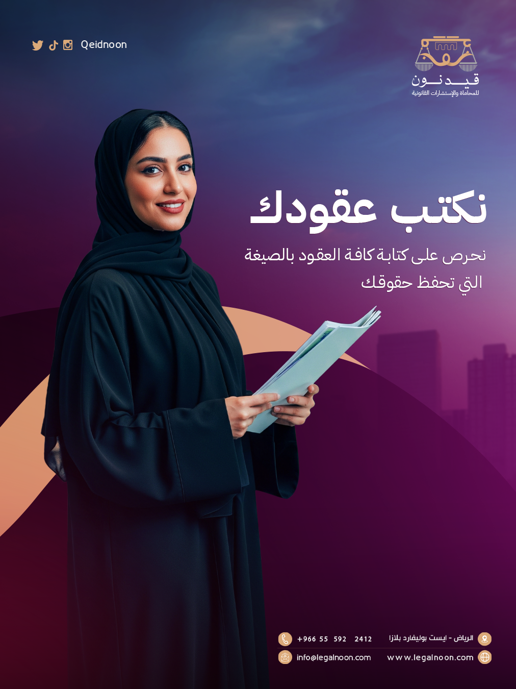 This project involved designing and developing a complete social media presence for Qeid Noon Law Firm, a prominent legal practice based in Riyadh. I handled both the visual design and the strategic content creation to build a professional and trustworthy online brand identity.